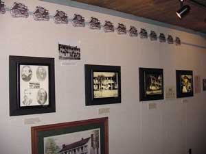 Opposite the wallcovering display wall is a timeline of the restoration and pictures of the building in different periods, which are backlit. Information about the various owners will be presented and will soon feature a looped video of the restoration process.
