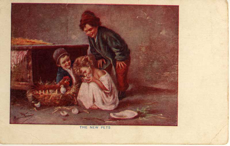 This is certainly an American postcard. The colors are dull, not quite in register, and the artwork is printed askew on the card.