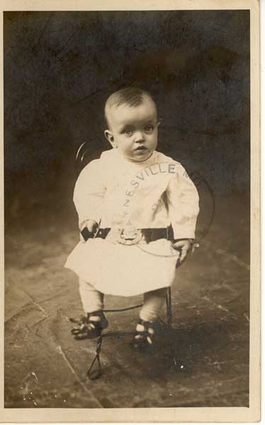 "Young Smiley" Thomason, one year and one month, sent by Mrs. Miles Thomason of Poplar, Bluff in July of 1910